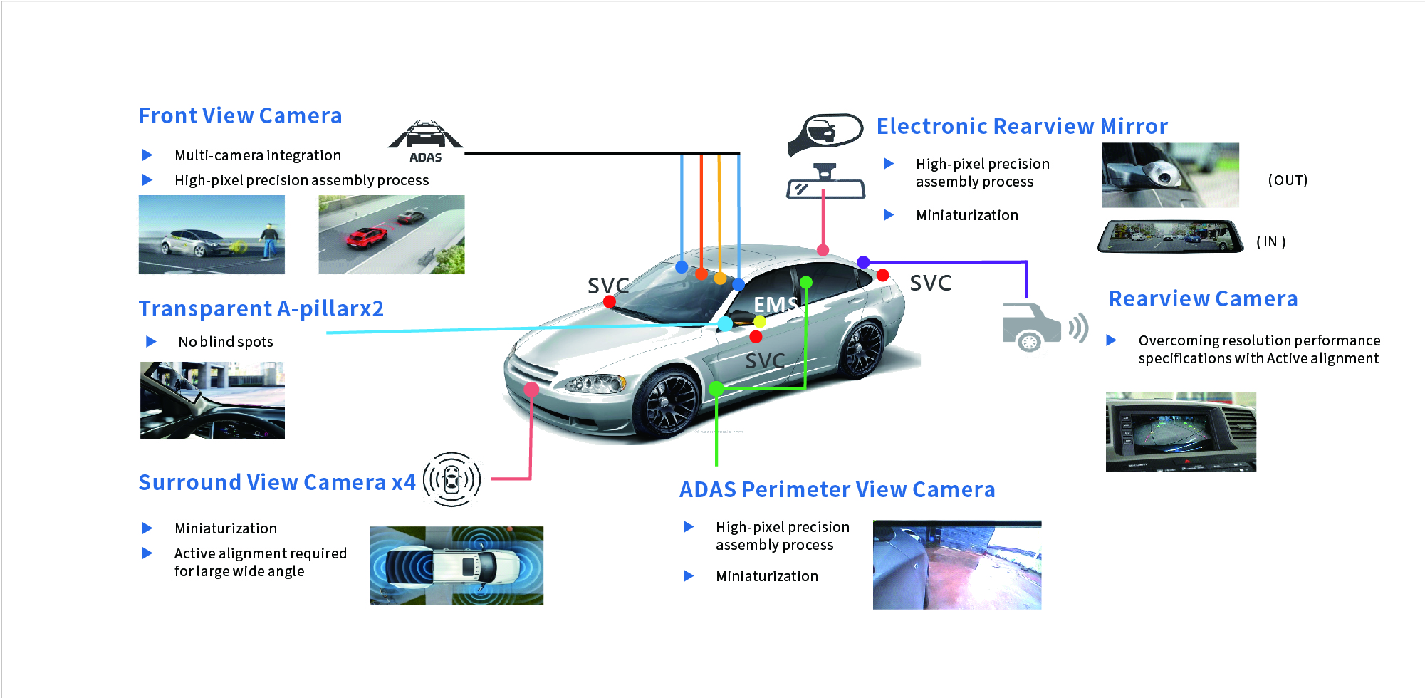 OFilm provides highly customized autonomous driving solutions including in-vehicle cameras, in-vehicle lenses, ultrasonic radar, millimeter radar, and ADAS software algorithms, including pure camera-based intelligent driving solutions, full millimeter radar automated parking solutions, full-stack intelligent driving solutions that include cameras and radar, and sensory fusion solutions based on weakly supervised learning algorithms.